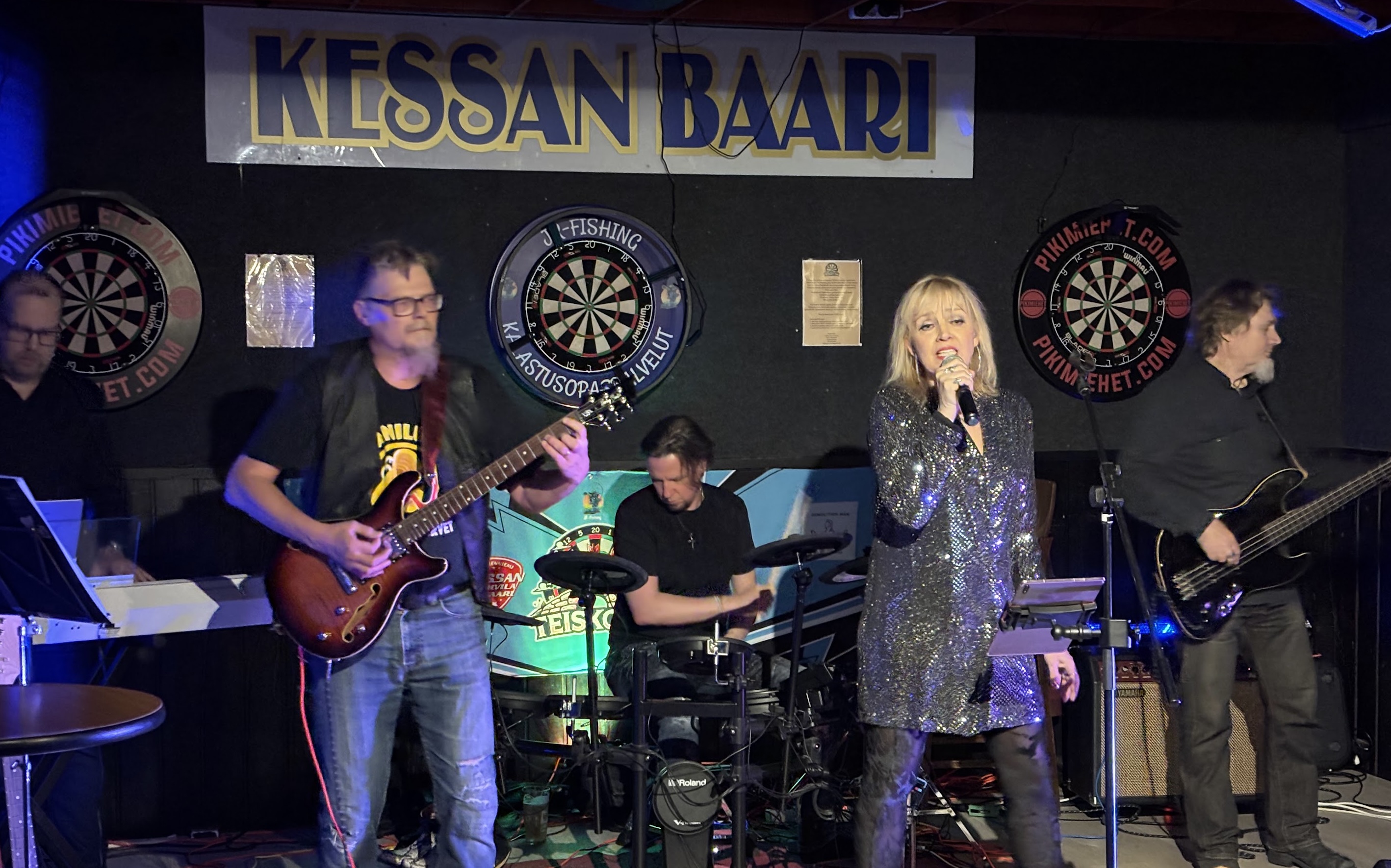 Kessan Baarissa viihtyi sekä bändi että yleisö. Soitimme ensimmäisen keikkamme uudella kokoonpanolla 4.10. Kessan Baarissa - oli hauskaa päästä esiintymään tähän Teiskon kulttimainetta nauttivaan bilebaariin.